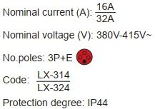 LX-314 LX-324 IP44 Panel Mounted Industrial Socket