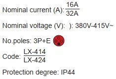 LX-414 LX-424 IP44 Panel Mounted Industrial Socket