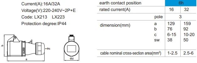 LX213 LX223 IP44 Pin And Sleeve Connector
