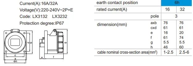 LX3132 LX3232 IP67 Panel Mounted Industrial Socket