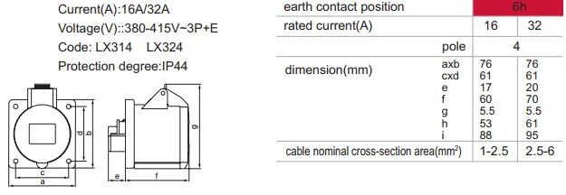 LX314 LX324 IP44 Panel Mounted Industrial Socket