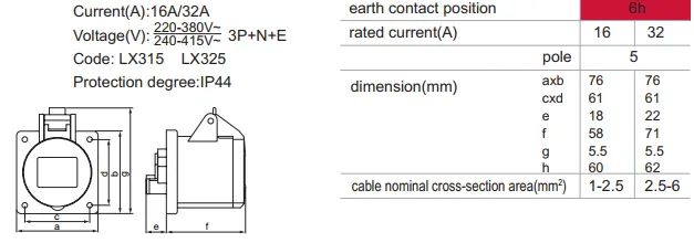LX315 LX325 IP44 Panel Mounted Industrial Socket