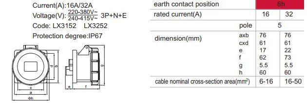LX3152 LX3252 IP67 Panel Mounted Industrial Socket