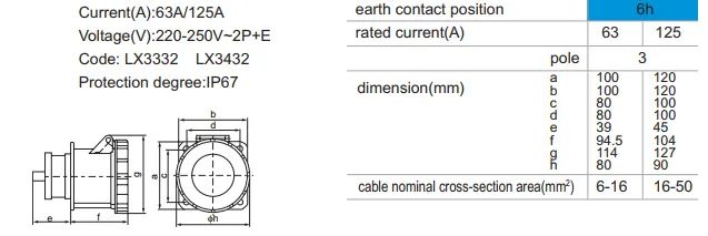 LX3332 LX3432 IP67 Panel Mounted Industrial Socket
