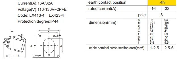 LX413-4 LX423-4 IP44 Panel Mounted Industrial Socket