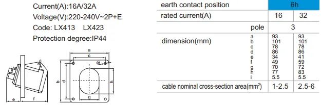 LX413 LX423 IP44 Panel Mounted Industrial Socket